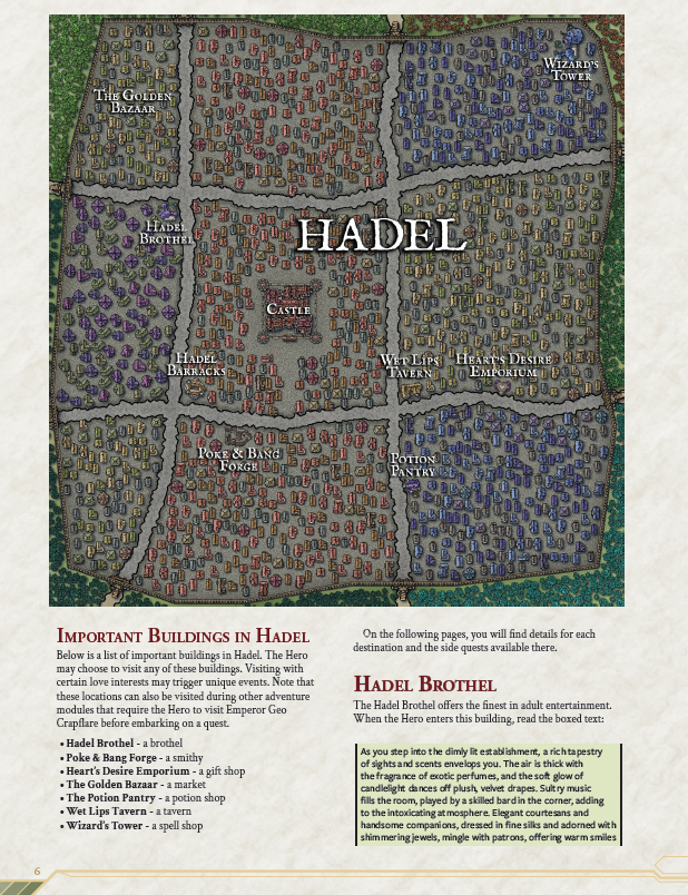 This campaign book is packed with Special Scenarios that let you tailor the game to your preferences. Whether you’re in the mood for a sexy escapade, a lively drinking game, or a classic dice-rolling adventure, A Date to the Grand Ball has something for every adult gaming table.